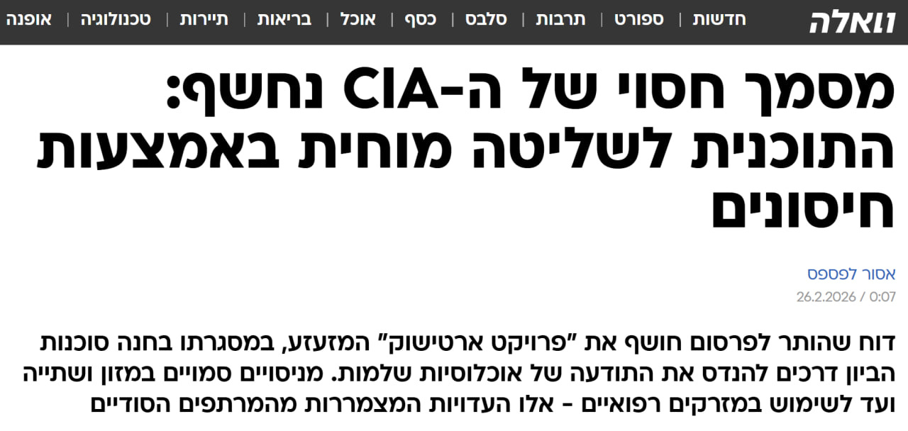כותרת באתר וואלה - מסמך חסוי של ה-סי.איי.איי נחשף: התוכנית לשליטה מוחית באמצעות חיסונים