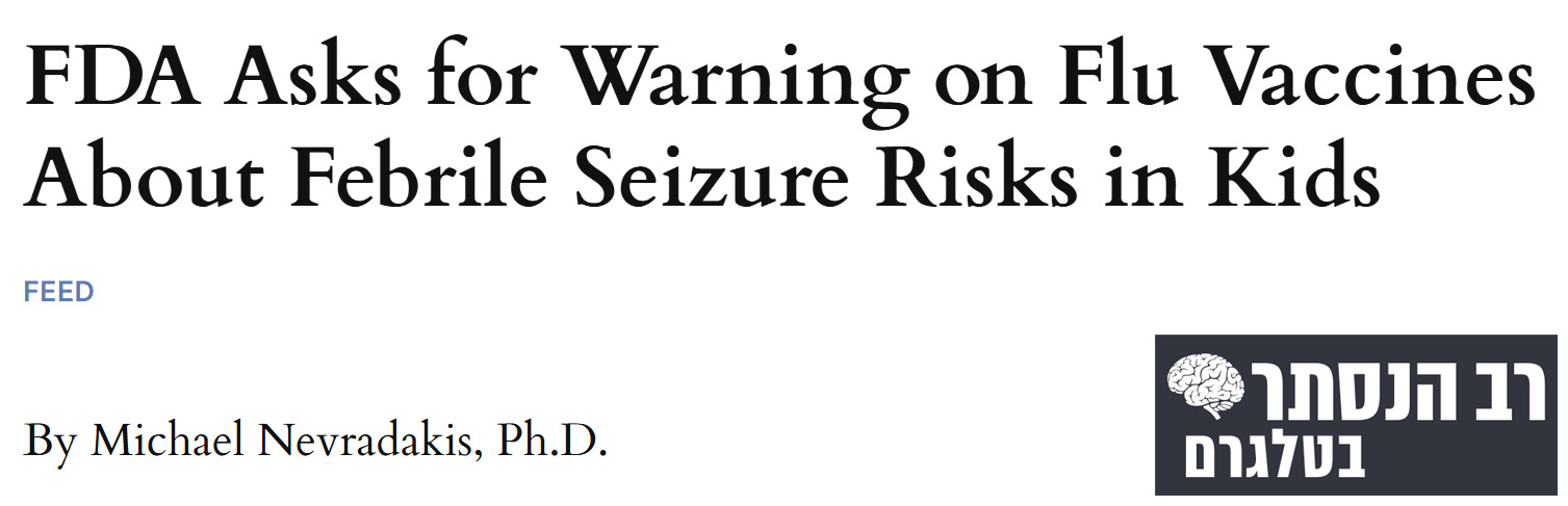 ארגון ה-אף.די.איי מבקש להוסיף אזהרה עבור חיסוני שפעת בנוגע לסיכוני פרכוסים קטלניים בקרב ילדים