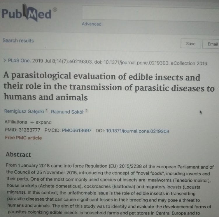 במחקר שפורסם ב-National Library Of Medicine - PubMed צויין כי החרקים שאושרו למאכל - משמשים כמאגר לטפילים שעלולים לגרום למגוון נזקים בריאותיים ולהעביר מחלות לבני אדם, ״חרקי המאכל הם מאגר לטפילים המזיקים לאנשים וחיות שלא נתנו עליו מספיק את הדעת״ נכתב במחקר, ״טפילים זוהו ב-81% מהחרקים שנבדקו ומתוכם 30% היו טפילים עם פוטנציאל לחולל מחלות בגוף האדם״.