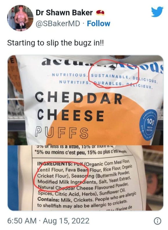 מעניין לעניין באותו עניין, מקרה מצחיק שהתרחש לאחרונה, בסמוך לועידת הפורום הכלכלי בדאבוס 2023, אחד ממנויי הסאבסטאק המכונה amuse החליט להתבדח על חשבון “אג’נדת אכילת החרקים”, הוא יצר בעזרת בינה מלאכותית “ספר בישול פארודי” שכותרתו הייתה: ספר בישול של הסדר העולמי החדש שנכתב ע”י גברת שוואב • מתכוני חרקים בהשראת הפורום הכלכלי העולמי.